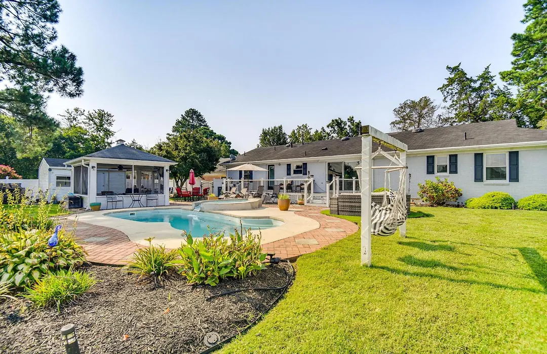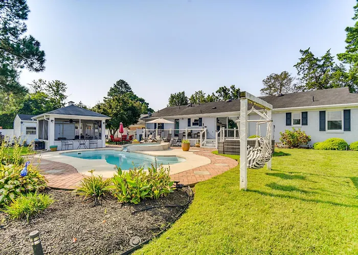 Gasten kunnen maaltijden bereiden in een ingerichte kitchenette of dineren in een eethoek buiten. U kunt ook gebruikmaken van een koelkast, een oven en een kookplaat om uw eigen maaltijd te bereiden. De dichtstbijzijnde luchthaven is Norfolk Internationaal, op 25 km van de gastvrije villa. Luxe Lakefront Portsmouth Home Fish, Swim And Play! heeft een patio om op te ontspannen na een drukke dag, samen met een privézwembad.